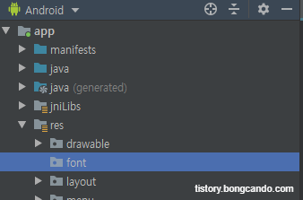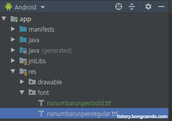 안드로이드 스튜디오에서 기본으로 제공하는 글꼴 외에도 자기가 원하는 글꼴을 적용하고 싶을때가 있다.