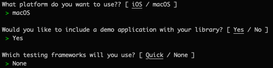 * 이 부분은 iOS, macOS중 어느 라이브러리를 만드냐에 따라 질문이 달라집니다.