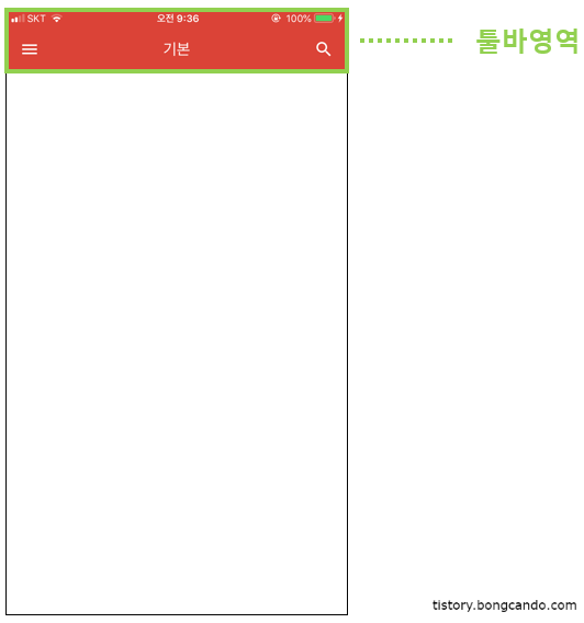메인 레이아웃을 구성할 때에는 화면의 최상단에 위치하며 Navigation Drawer를 open시키는 버튼이나 다른 기능들을 집어넣을 수 있는 영역인 툴바(Tool bar) 영역을 먼저 구성해 준다.