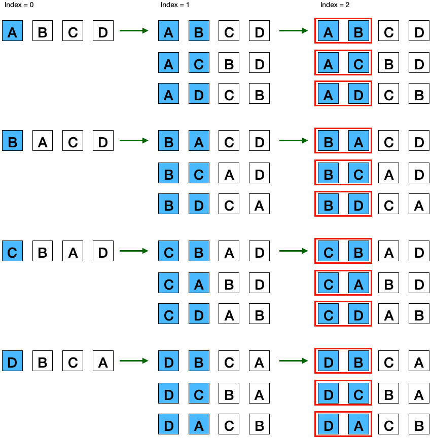 코딩 테스트에서 빈번하게 사용되는 순열과 조합 알고리즘에 대해 공부해보자. 직접적으로 몇 개의 조합을 찾아라!라는 문제보다는 순열 혹은 조합을 적절히 사용해서 경우의 수를 찾는 문제들이 빈번히 출제되므로 대비해두는 것이 좋다. 1. 순열 (Permutation) '서로 다른 n 개의 원소 중에서 r 개를 골라 순서를 구분하여 나열한 경우의 수'를 의미한다. 순열은 nPr 로 표현한다. 순열의 개수를 구하는 공식은 n! / (n-r)! 이다. 순열에서 중요한 점은 순서를 구분한다는 점이다. 예를 들어 [1, 2, 3, 4]의 배열에서 순서를 구분하여 3가지 원소를 경우의 수를 나열하면 아래와 같이 24개의 경우의 수가 나온다. [1, 2, 3] [1, 2, 4] [1, 3, 2] //[1, 2, 3] 과 ..